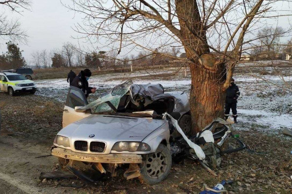 La Sîngerei un BMW s-a izbit violent într-un copac! Șoferița de la volan a decedat iar alți doi pasageri au fost spitalizați