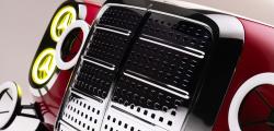 Noul concept păstrează ADN-ul vizual al originalului: grila frontală impunătoare, farurile poziționate vertical și celebra nuanță roșie decorată cu inscripții inspirate din grafica mașinii de competiție din anii ’70.