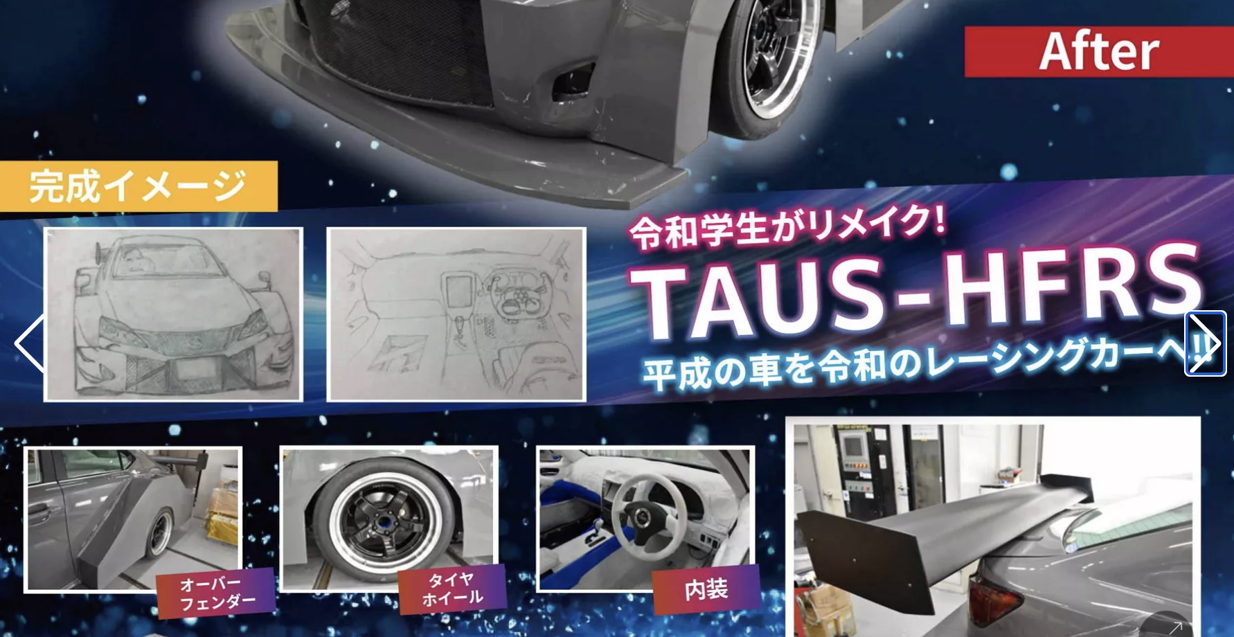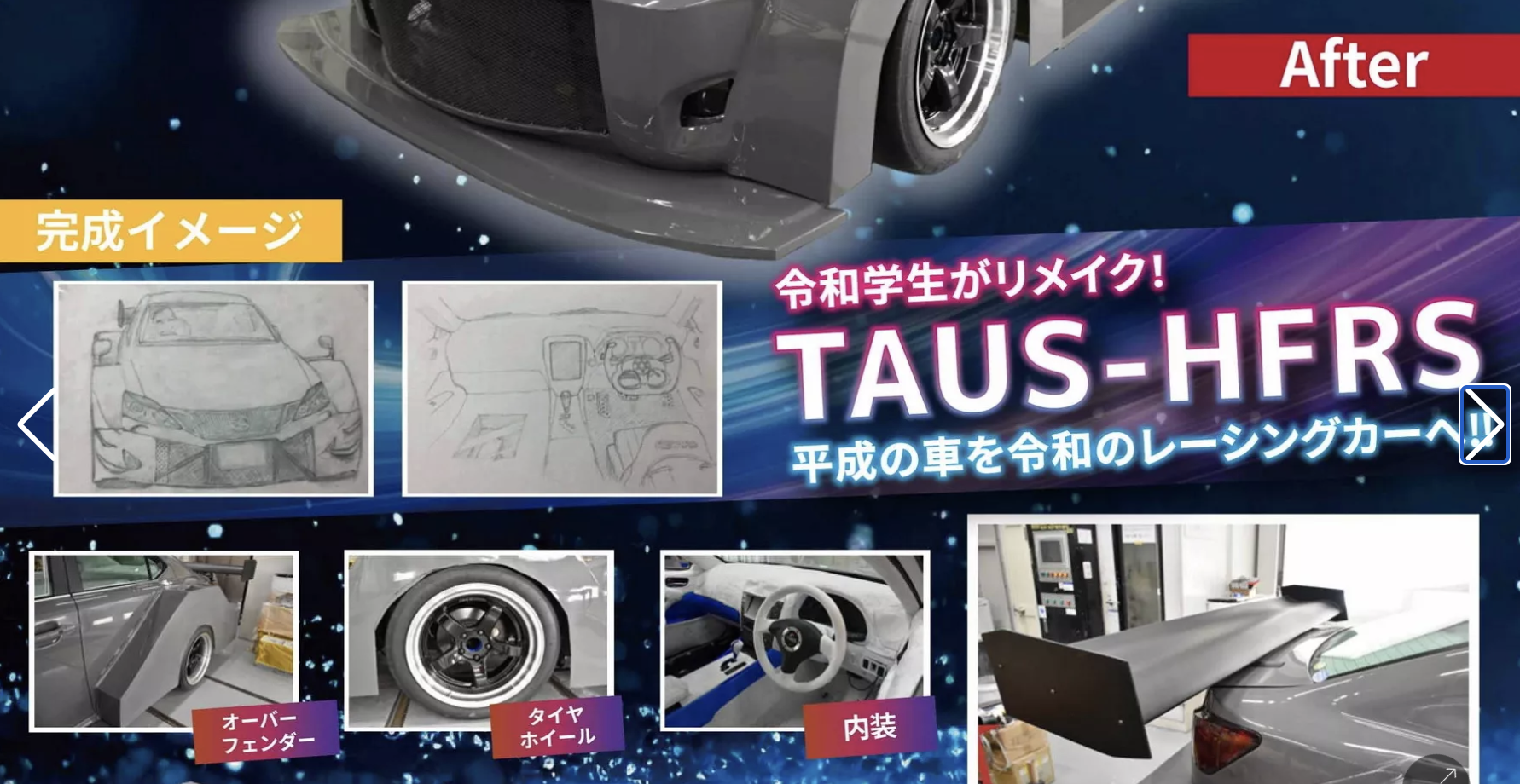 Proiectul poartă numele TAUS-HFRS și are la bază un Lexus IS de a doua generație. Pentru unii, mașina a fost reinventată, pentru alții… sacrificată. Conceptul a urmărit îmbinarea trecutului, prezentului și viitorului industriei auto japoneze: un model din era Heisei (1989-2019), o caroserie inspirată de stilul epocii Showa (1926-1989) și un interior cu influențe din perioada Reiwa (2019-prezent).