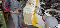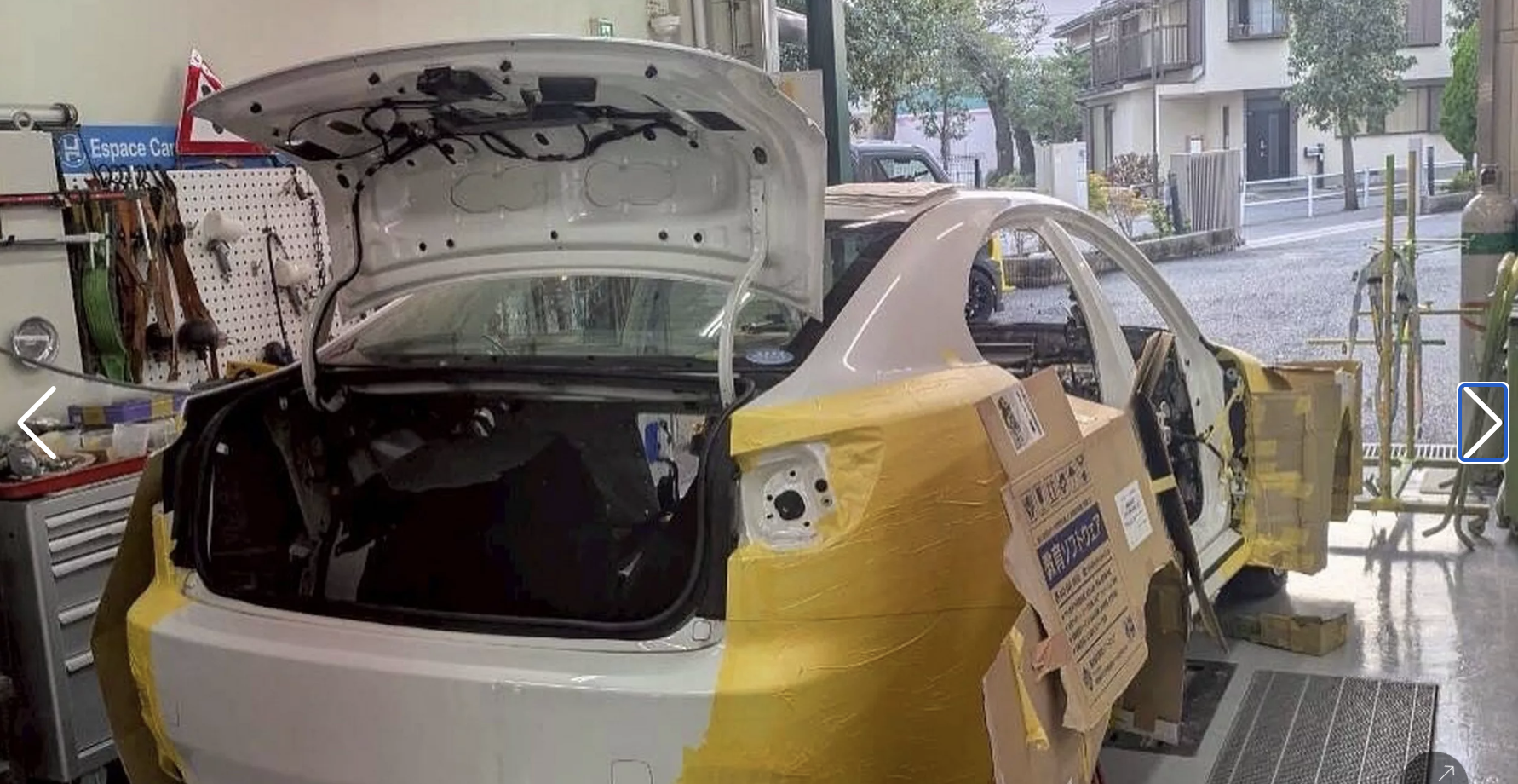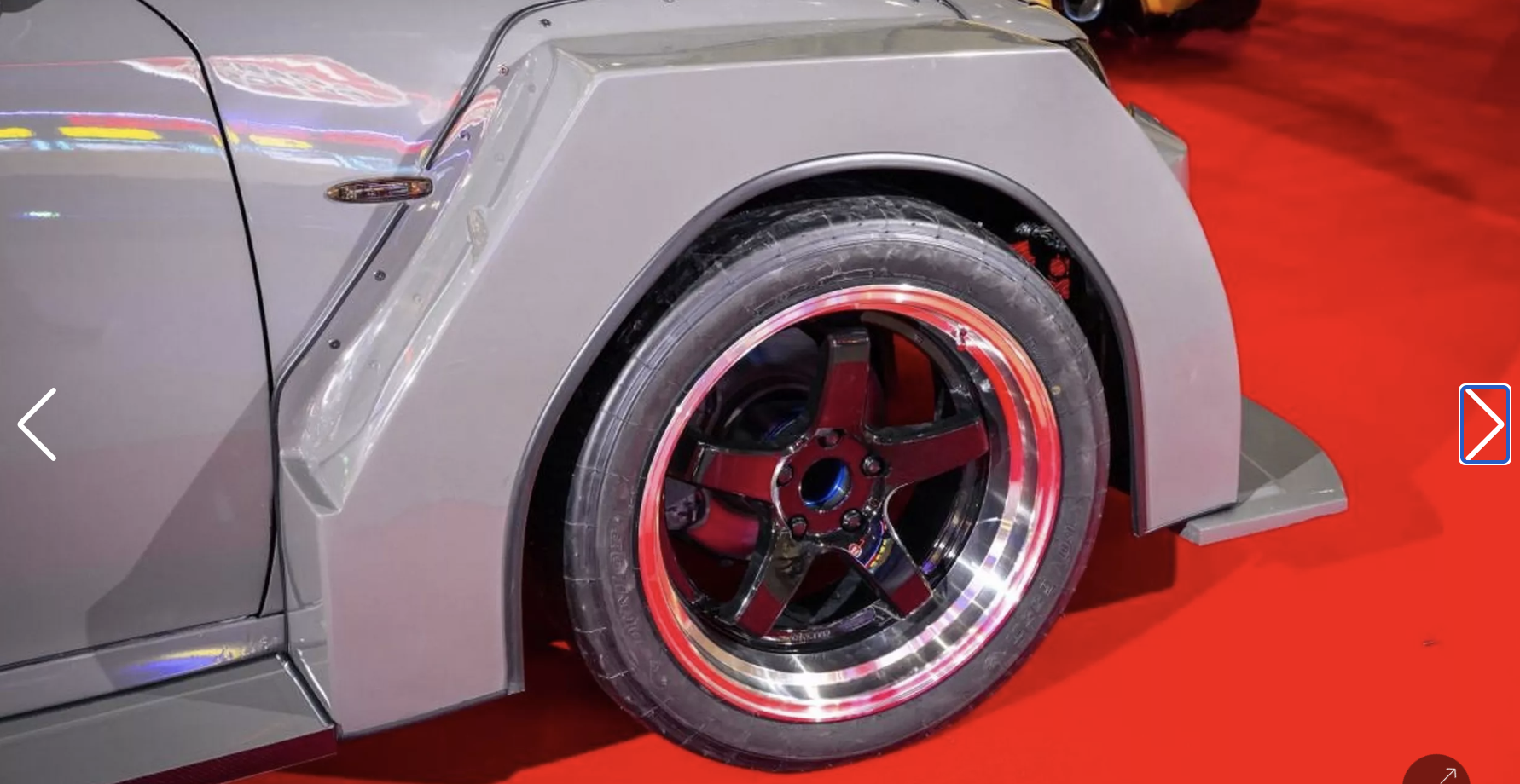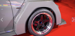 Aripile evazate, montate ulterior, transformă radical silueta mașinii, acoperind parțial jantele aftermarket de 18 inch și făcând ușile spate mai mult decorative. Partea din spate creează impresia că sedanul a fost scufundat pe jumătate într-un strat de beton.
