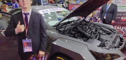 Deasupra acestui ansamblu masiv este un eleron reglabil electronic, completat de patru țevi de evacuare care ies din bară precum motoarele unei rachete din desene animate.