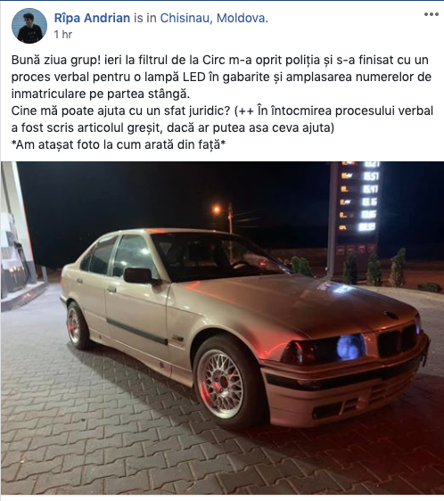 Atenție, nu faza lungă și nu faza scurtă, ci luminile de poziții. Bonus, i-au aplicat și o amendă pentru instalarea numărului de înmatriculare în partea stângă a automobilului, asta deși legea, nu interzice acest lucru și prevede că plăcuțele cu numere de înmatriculare pot fi instalate pe mijloc (axa centrală) sau pe partea stângă a vehiculului.