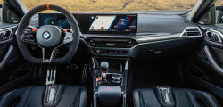 Pentru exterior, bavarezii propun patru nuanțe: Gri Brooklyn Metallic, Negru Sapphire Metallic, Albastru Riviera și Verde Isle of Man Frozen Metallic. Pe interior, în continuare regăsim sistemul Curved Display. Sunt prezente și centurile cu cusături în nuanțele M. Cu siguranță că nu lipsesc cusăturile contrastante și logo-urile M4 CS iluminate integrate în tetiere.