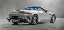 Chiar dacă kit-ul pentru SL 63 a fost dezvăluit în acest an, noua versiune adaugă un plus de dramatism. Caroseria este într-o nuanță exclusivă de gri, iar componentele din fibră de carbon, inclusiv capota cu prize de aer și contururile accentuate, completează aspectul distinctiv al mașinii.
