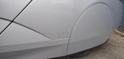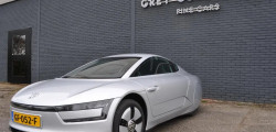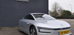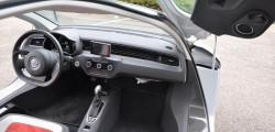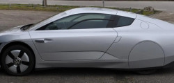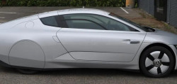 Este vorba despre Volkswagen XL1! Designul acestuia îl prezintă mai degrabă ca pe un concept, decât o mașină de serie. Caroseria este confecționată din plastic ranforsat cu fibră de carbon, iar portierele se deschid vertical. Lipsa lunetei și stopurile înguste completeză aspectul futuristic, iar interiorul impresionează prin simplitatea sa.