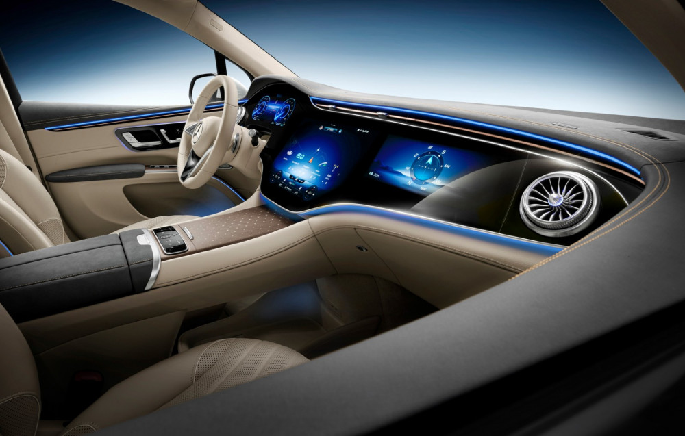 Se cunoaște că noul EQS SUV va fi dotat cu bord digital MBUX Hyperscreen. Totodată, acesta va fi oferit cu două rânduri de scaune în dotarea standard. Opțional, modelul va putea fi echipat și cu un al treilea rând de scaune.