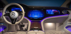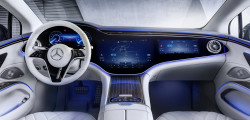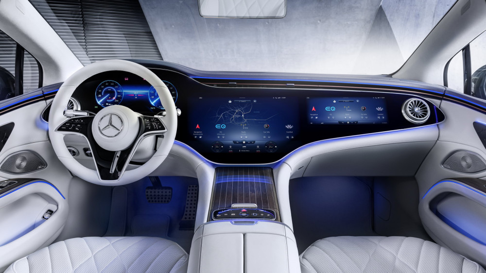 Tehnologia Hyperscreen folosește un display curbat de 141 de centimetri, care încorporează atât instrumentarul de bord digital, cât și ecranul central, dar și cel al pasagerului din dreapta. Cu ajutorul inteligenței artificiale, sistemul MBUX Hyperscreen este capabil să răspundă proactiv la nevoile utilizatorilor și să controleze peste 20 de funcții, printre care: sistemul audio, încălzirea și masajul în scaune, sau navigația.