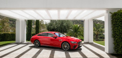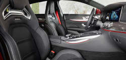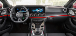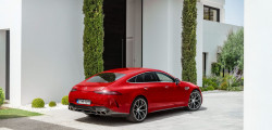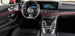 Când vine vorba de design, menționăm că PHEV-ul nu diferă mult de modelul de bază AMG GT 4-Door Coupe, un lucru evident de altfel. Atribuirea către vehiculele prietenoase cu mediul o indică emblemele specifice și priza de încărcare, integrată în bara de protecție spate.