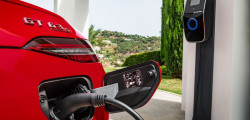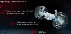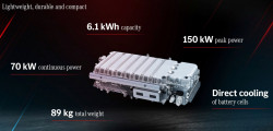 Motorul electric este alimentat de o baterie cu capacitatea de 6.1 kWh, cu o masă de 89 de kilograme, răcită individuale cu 14 litri de lichid, pentru a păstra constant temperatura de 45 de grade Celsius. În aceste condiții, bateria asigură o autonomie pur electrică de 12 kilometri. Mașina este livrată cu un încărcător de 3.7 kW.