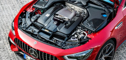 Așadar, numele său este Mercedes-AMG GT 63 S E-Performance. Cupe-ul cu patru uși este cel mai puternic vehicul produs vreodată de uzina din Affalterbach. Acesta este echipat cu un sistem hybrid alcătuit dintr-un motor V8 Twin-turbo de 4.0 litri volum și o unitate electrică intalată pe axa spate. În total, PHEV-ul de performană pune la dispoziția șoferului 843 CP și 1.010 Nm, sau 1.540 Nm cu funcția Boost.