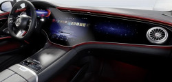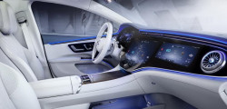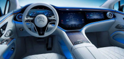 Mercedes-Benz a dezvăluit interiorul viitoarei limuzine electrice EQS. Principala inovație tehnică va fi apariția sistemului multimedia MBUX Hyperscreen cu un ecran de o lățime totală de 56 inch care ocupă tot spațiul planșei de bord. Debutul public al lui Mercedes-Benz EQS este programat pentru 15 aprilie.