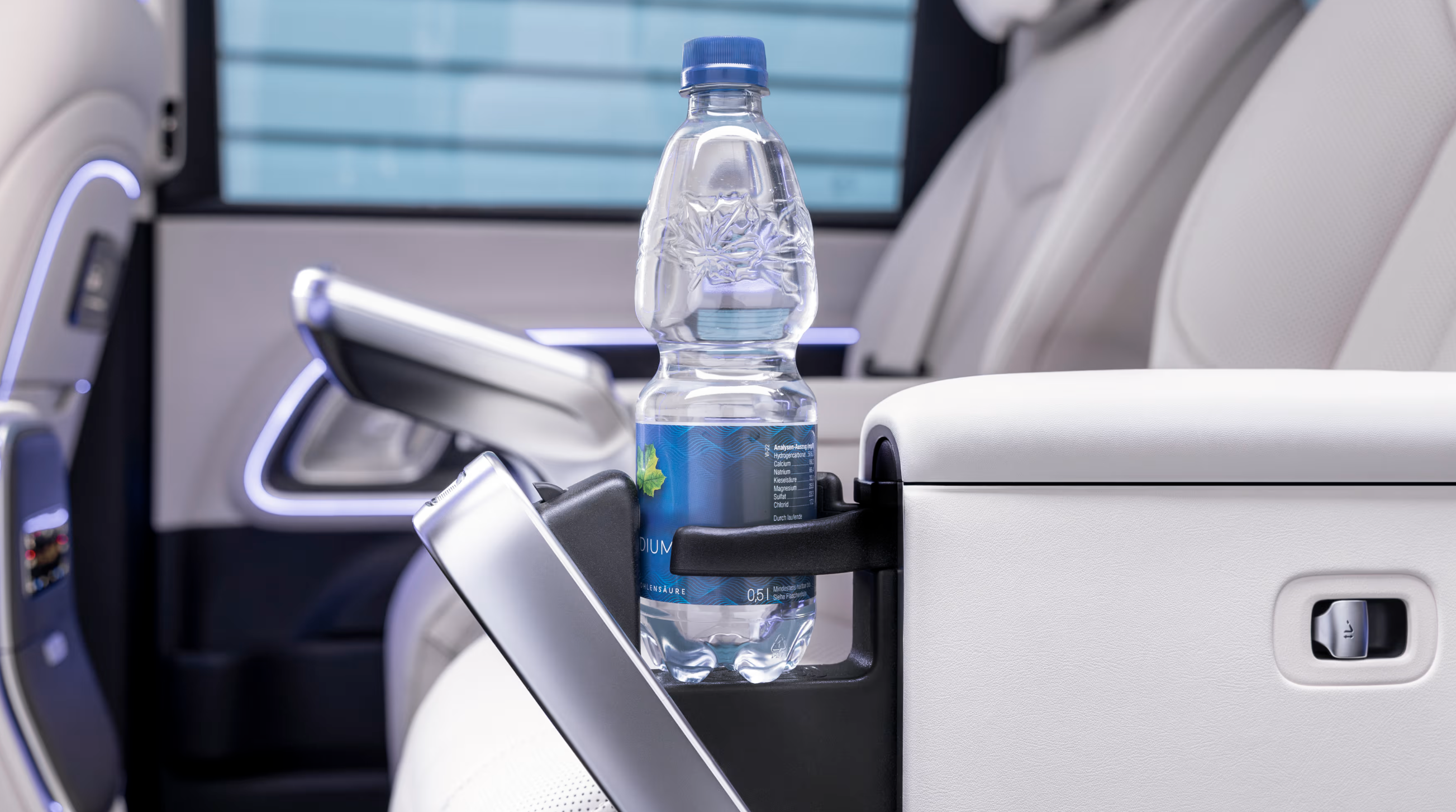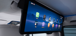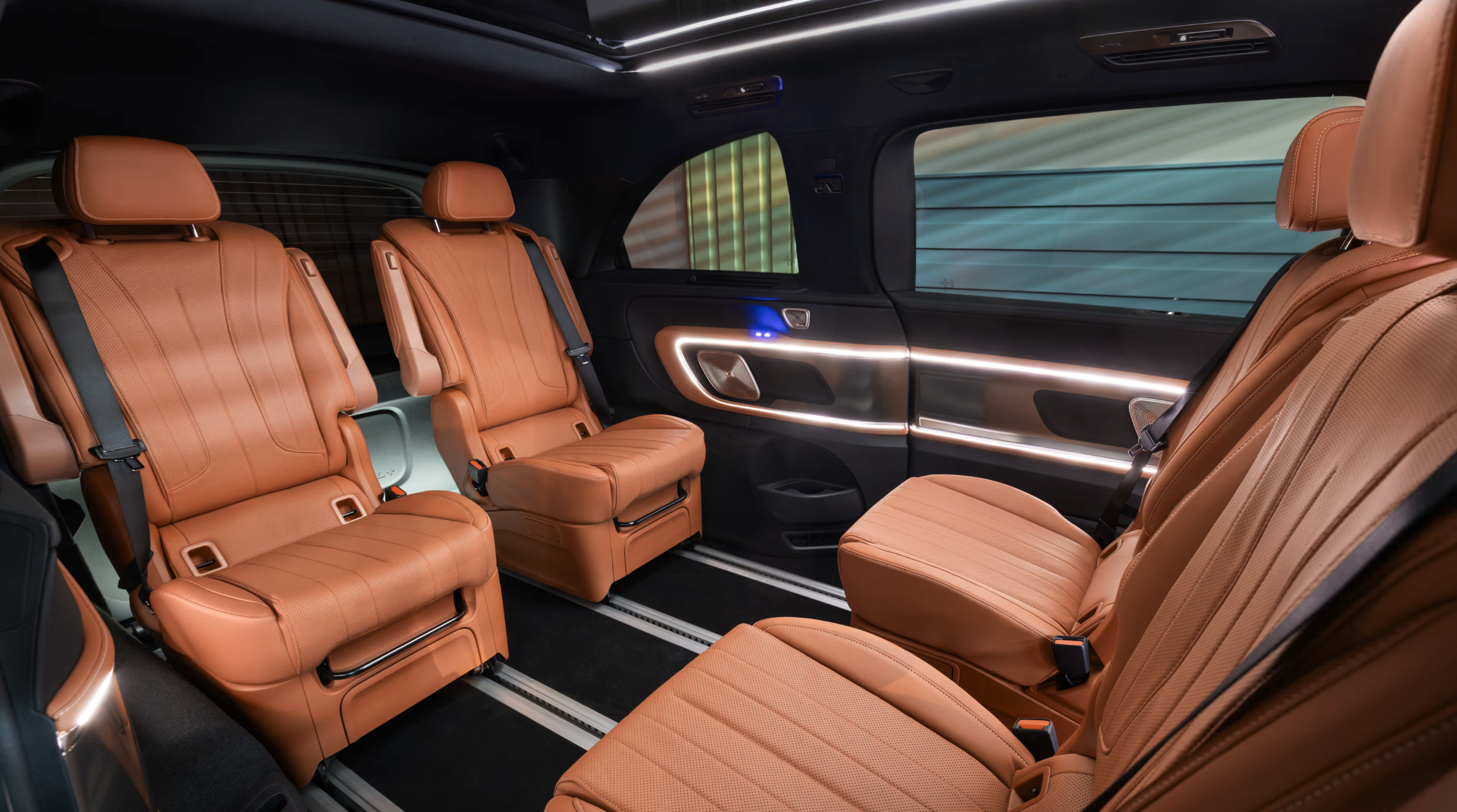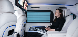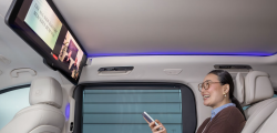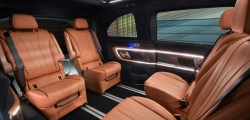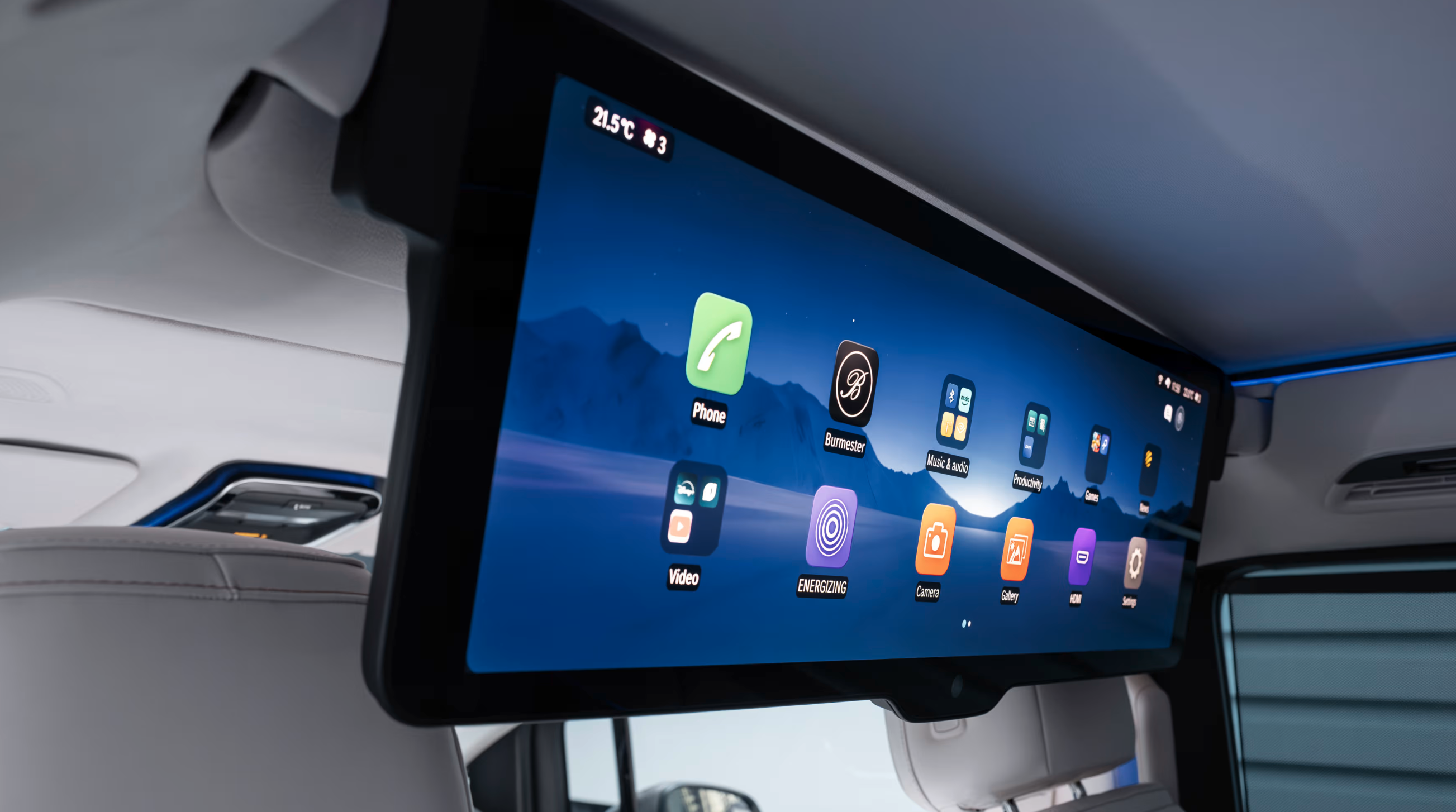 În spate, experiența devine și mai exclusivistă. Un ecran panoramic de 31.3 inch cu rezoluție 8K "coboară" din plafon, similar cu sistemul disponibil pe BMW 7 Series. Acesta poate fi utilizat pentru videoconferințe sau pentru vizionarea filmelor, fiind completat de un sistem audio Burmester cu 22 de difuzoare.