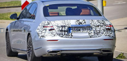 În desen observăm un sedan în formă de coupe cu roți masive și blocuri optice cu o semnătură luminoasă în stilul noului E-Class. Printre diferențele față de generația actuală se numără și o grilă a radiatorului modificată, care a devenit mai rotunjită, iar prizele de aer au fost lipsite de barele orizontale cromate.