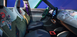 Noul limbaj de design prezentat de Aceman continuă la interior. Acolo avem un bord digital și un nou sistem de infotainment. Planșa de bord este desenată sub forma unui soundbar portativ, noul design încadrează perfect ecranul central rotund cu tehnologie OLED.