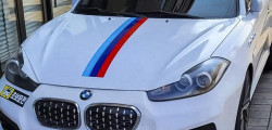 Privită din față observăm capota modificată, bara de protecție în stilul celei de pe BMW Z4 și desigur celebra grilă a radiatorului dezvoltată de designerii bavarezi și adaptată de tunerul coreean.