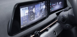 La capitolul interior, care acum se aseamănă cu un lounge grație spațiului generos, observăm planșa de bord desenată într-un stil minimalist, care este nu integrează absolut niciun buton fizic. Un lucru special îl constituie sistemul care gestionează climatizarea, poziționat central, butoanele tactile ale căruia, devin active doar atunci când motorul este pornit. În momentul atingerii, acestea vibrează ușor pentru a confirma acțiunea.