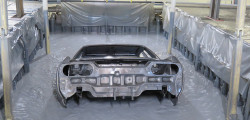 În continuare, are loc pregătirea pentru vopsirea mașinii. Caroseria este introdusă într-o baie electrostatică pentru a asigura adeziunea vopselei de metal. Aici se poate opta pentru nuanța originală a mașinii sau pentru ceva nou, după cum decide clientul.