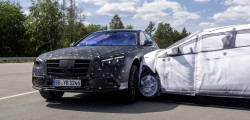 Mercedes-Benz continuă campania de promovare pentru noua generație S-Class și declară că limuzina premium va fi prezentată pe 2 septembrie. Anterior, reprezentanții constructorului au anunțat că modelul va oferi o versiune PHEV, au publicat imagini de la interior și au spus că acesta va fi primul model din lume cu airbag-uri pentru pasagerii din spate pentru impacturi frontale!