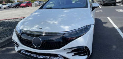 Noua limuzină electrică Mercedes EQS, a fost surprinsă în parcarea fabricii Tesla din Fremont! Vezi cum arată pe viu
