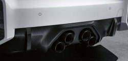 Un alt accesoriu cu care majoritatea clienților sunt obișnuiși de la modelele M3 și M4 sunt cele patru terminații ale sistemului de evacuare, care sunt montate central. În pachetul de accesorii este completat și cu elemente grafice M Performance.