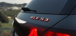 Farurile, grila și stopurile au fost redesenate, iar grila specifică AMG este acum mai mare. În partea din spate, sigla GLE 53 are accente roșii, stopurile includ motivul stelei Mercedes, iar sistemul de evacuare este evidențiat de patru terminații rotunde.