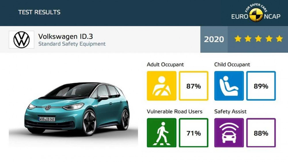 Recent, Euro NCAP (European New Car Assessment Program) a supus noul EV al celor de la Volkswagen, testelor de siguranță conform noii metodologii actualizate, iar rezultatele sunt destul de încurajatoare pentru model. Organizația europeană afirmă că ID.3 a obținut calificativul maxim de 5 stele în cadrul testului, după ce a obținut rezultate bune la fiecare etapă.