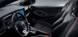 În interior, GR Yaris impresionează cu un instrumentar de bord digital de 12.3 inch și un display central înclinat cu 15 grade către șofer. De asemenea, scaunul șoferului a fost coborât cu 25 de milimetri pentru a oferi o experiență de condus îmbunătățită.