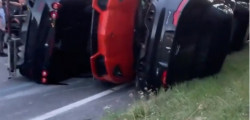 Pe trailer se aflau automobile precum Aston Martin, Lamborghini, Mercedes, BMW, Nissan și altele. Șoferul vehiculului a pierdut controlul asupra volanului și ulterior s-a răsturnat. Toate automobilele de pe trailer au fost grav avariate, în timp ce șoferul, din fericire, a scăpat cu răni ușoare.