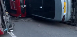 Un trailer auto care transporta mașini de lux a provocat un accident rutier pe un drum din Marea Britanie. Din acest motiv au fost cauzate pagube de milioane, fiind deteriorate mai multe mașini.