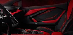 În interior, nuanțele vibrante sunt preluate în accentele roșii ce completează tapițeria neagră. Între scaune, o placă hexagonală inscripționată „Opera Unica” subliniază caracterul exclusiv al modelului.