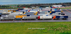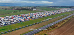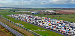 Peste 3500 de camioane au ajuns în imposibilitatea de a se deplasa din Marea Britanie spre Franța! Câteva dintre ele au fost parcate pe pista aeroportului Manston din sud-estul Angliei, iar grație celor de la Swift Aerial Photography putem vedea cum arată totul de sus.