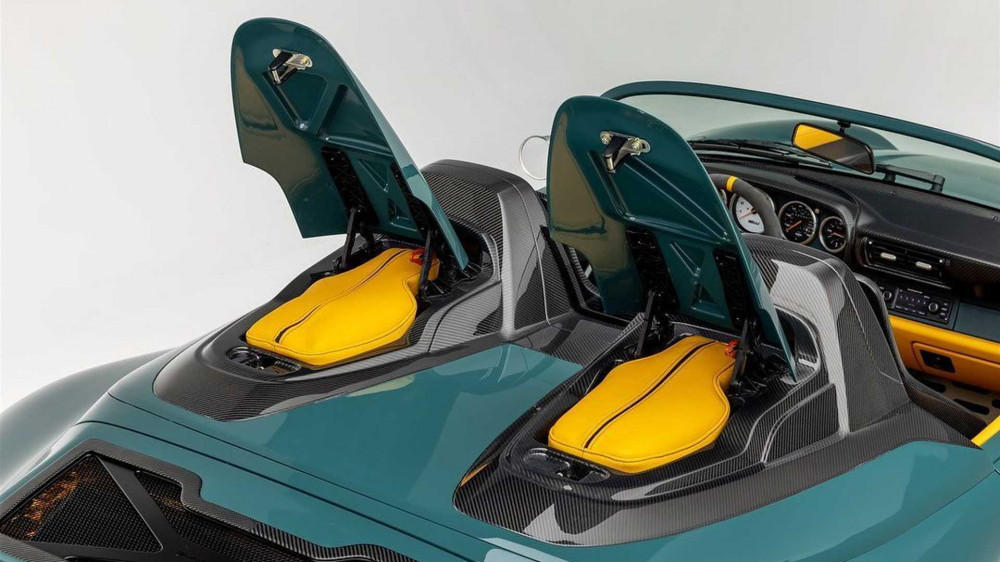 Dacă tot s-a axat pe reinterpretare, cei de la atelier au oferit mașinii și o notă retro, instalând oglinzi retrovizoare în formă de glonț. Jantele cu care s-a echipat modelul sunt clasice și pot fi realizate sau din carbon, sau din magneziu. Primul exemplar al acestui Speedster a fost deja prezentat în cadrul evenimentul Monterey Car Week. Apariția sa a fost una elegantă și clasică, mașina fiind vopsită în nuanță verde Cannes cu interior finisat în piele portocalie.