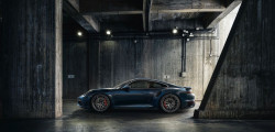 Noul 911 Turbo oferă o serie de elemente aerodinamice noi, printre care: prize de aer mai generoase, un splitter frontal activ și o aripă spate redesenată. Modelul este încălțat standard într-un set de jante cu diametrul de 20 de inch pe puntea față și 21 de inch pe axa spate.