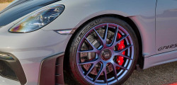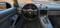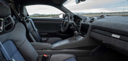 Pachetul de performanță opțional Weissach oferă și mai multe elemente din fibră de carbon.Suspensia a fost revizuită temeinic, cu arcuri și amortizoare noi, care coboară garda la sol cu 25 mm față de un GT4 standard.