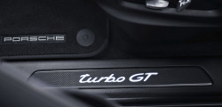 Turbo GT este bazată pe versiunea Coupe, iar la capitorul design plusează o bară frontală retușată cu prize de aer mai generoase, jante cu diametrul de 22 inch, un plafon din carbon, un difuzor din carbon, dar și un eleron care crește apăsarea pe axa spate cu 40 kg. La interior, pasagerii se vor bucura de o tapițerie din Alcantara, scaune sport și noul sistem de infotainment Porsche Communication Management 6.0.