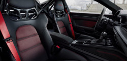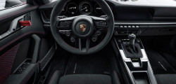 La interior menționăm scaune sport din fibră de carbon îmbrăcate în piele, ce conțin cusături roșii și emblema GT3 RS brodată în zona tetierelor. Pe volan sunt prezente o serie de comenzi rotative, care îi permit șoferului să regleze setările aero și ale motorului conform preferințelor sale. Inclusiv nivelul de amortizare și diferențialul spate pot fi reglate. Cei care optează pentru pachetul Club Sport vor primi și un roll-cage.