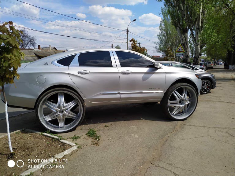 Și când zic mari mă refer la ”mult mai mari decât ce prevede uzina”. Pe la 28-30 de inch în sus. Un pasionat auto ar putea intui ușor, după cum arată mașina, dimensiunile jantelor, fie ele de 19, 20, 21 sau maxim 22 de inch. Însă tot ce e peste, deja devine o problemă. Iată de ce este dificil de înțeles și ce mărimi au jantele acestui Chevrolet Malibu, văzut în oraș recent pe strada Muncești din capitală.