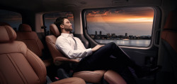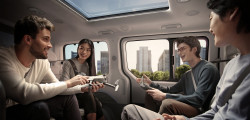 Versiunea care vine cu nouă locuri dispune de o altă particularitate interesantă - ocupanții rândului doi pot redirecționa scaunele la 180 grade, în sens opus al direcției de deplasare, o soluție perfectă pentru clienții corporativi.