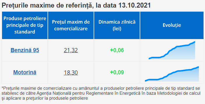 Începând cu ziua de azi, prețurile pentru benzină și motorină se modifică. Vestea proastă constă în faptul că prețul pentru un litru de combustibil este în creștere. Astfel, ANRE a stabilit pentru 13 octombrie curent următoarele prețuri: 21.32 lei pentru un litru de benzină și 18.30 pentru un litru de motorină.