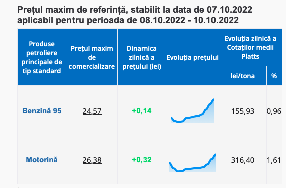 Mai exact, benzina se va scumpi cu încă 14 bani și va ajunge să coste cel mult 24.57 lei per litru, în timp ce motorina adaugă la cost 32 de bani și se va comercializa cu maxim 26.38 lei per litru.