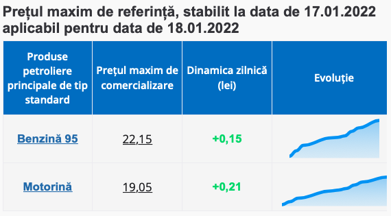 Astfel, benzina se scumpește cu 15 bani și se va vinde cu maxim 22.15 lei, în timp ce motorina plusează la cost tocmai 21 de bani și se va comercializa cu 19.05 lei.