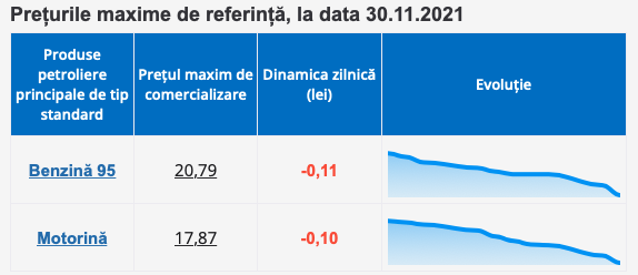 Așadar, după ce ieri, a fost anunțate scăderi cu 12 bani la benzină și 14 bani la motorină, astăzi avem noile cifre nunțate de ANRE. Astfel, benzina standard se ieftinește cu 11 bani și ajunge să coste maxim 20.79 lei, pe când motorina scade 10 bani din cost și se va vinde la benzinării nu mai scump de 17.87 lei!