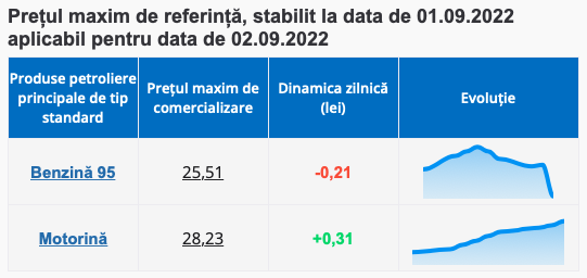 ANRE a publicat recent noile prețuri plafon, valabile pentru ziua de mâine 2 septembrie. Potrivit acestora, tendința de scumpire a motorinei și ieftinire a benzinei este menținută în continuare.