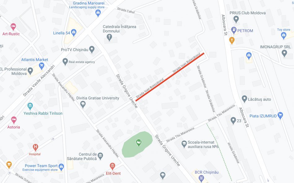 Primăria municipiului Chișinău informează că în perioada: 21 septembrie 2020 - 09 noiembrie 2020, va fi suspendat traficul rutier pe strada Ioan Botezătorul, tronsonul cuprins între str. Grigore Ureche și Grădinilor, în legătură cu executarea lucrărilor de reabilitare a colectorului menajer fecaloid.