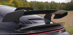 Un eleron suspendat realizat din mai multe piese, de genul celui prezent pe noul GT3, în stilul unei mașini de curse, se va descurca cu siguranță mult mai bine la creșterea forței de apăsare decât unul tradițional. Asta înseamnă mai multă aderență la drum, cu mai puțină reținere la viteze mai mari, astfel ca modelul să performeze excelent inclusiv pe Autobahn-urile nemțești.