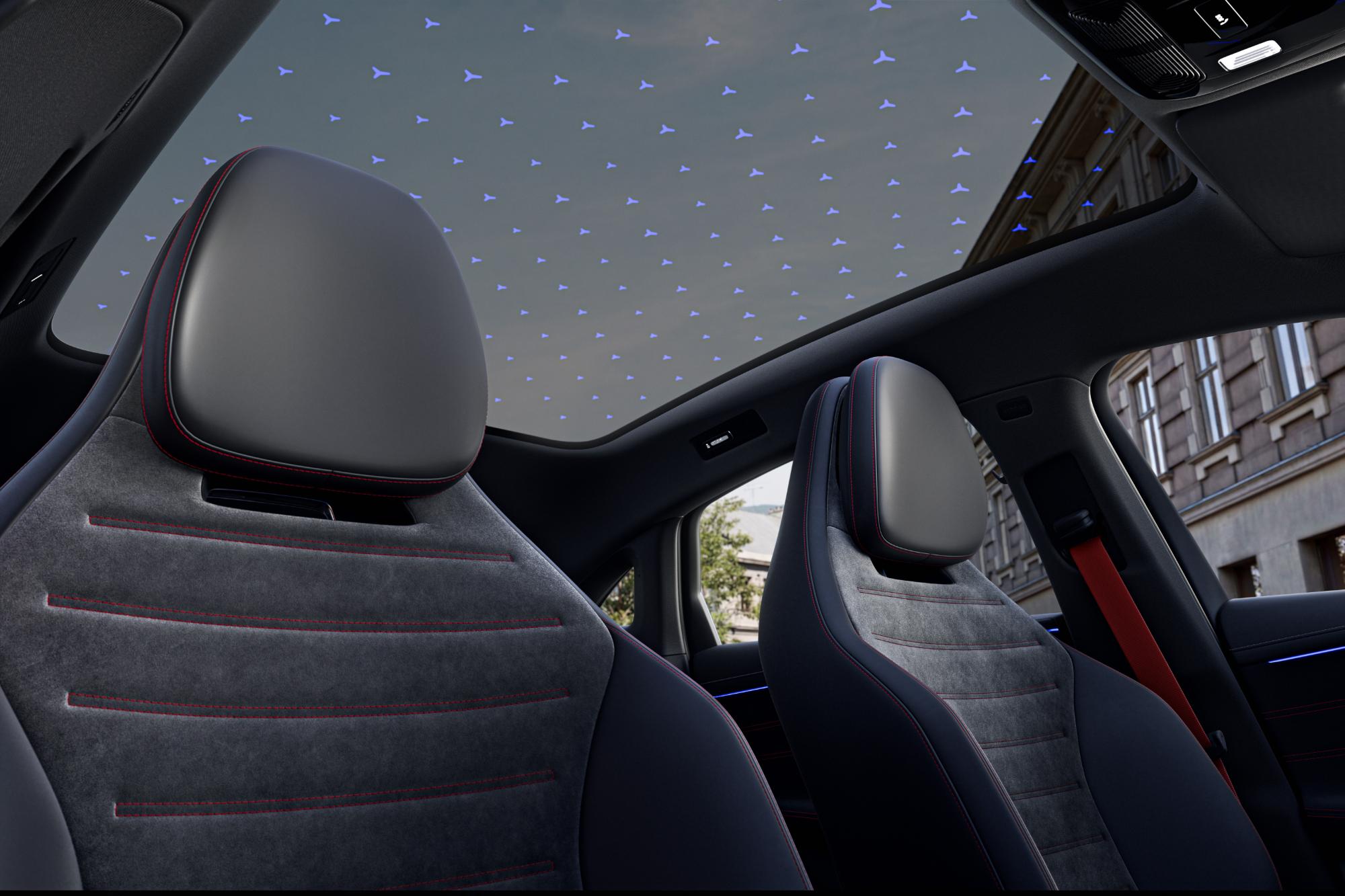 Pe partea de tehnologie, clienții vor avea la dispoziție sistemele MBUX Hyperscreen sau Superscreen, iar iluminarea ambientală poate fi extinsă inclusiv la plafonul panoramic Sky Control.