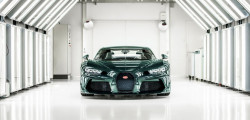 Pe interior, regăsim scaune îmbrăcate în piele verde și Negru Beluga. Nu lipsesc și ornamentele din fibră de carbon și plafonul Sky View. Sub capotă modelul are montat un propulsor W16 de 8.0 litri volum, quad-turbo. Acesta însumează 1.600 CP și 1.600 Nm.