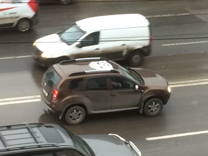 Iar pentru a fi identificat și readus la patria mamă, robotul și-a lipit un abțibild pe acoperiș, în felul ăsta sporindu-și șansele să fie remarcat. Chiar dacă riscă să fie observat și de inamicii săi nu doar de rude, totuși Duster-ul circulă curajos prin Chișinău și îndură cu multă rezistență toate gropile, denivelările și carburantul de calitate dubioasă importat în Moldova.
