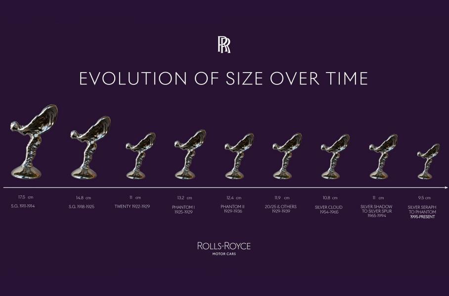 Din 1911, dimensiunea figurinei s-a redus la mai mult de jumătate, însă figurile sunt încă confecționate manual și nu pot exista două exemplare absolut identice. Rolls-Royce susține că modificarea a fost necesară pentru a îmbunătăți aerodinamica vehiculelor electrice, deși există o anumită minciună în aceste declarații, pentru că știm bine că figurina se scunde ușor sub capotă.