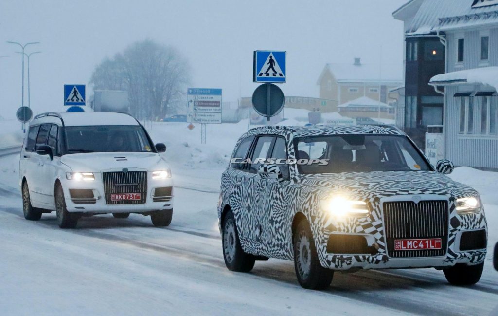 Mașina despre care redacțiil din Rusia scriu că ar fi cel mai apropiat rival al lui Rolls-Royce Cullinan, a fost văzut de această dată în Suedia. Noul model care se va alătura gamei Senat S600 și Senat L700, este deocamdată camuflat, dar nu își poate ascunde trăsăturile de vehicul de teren.